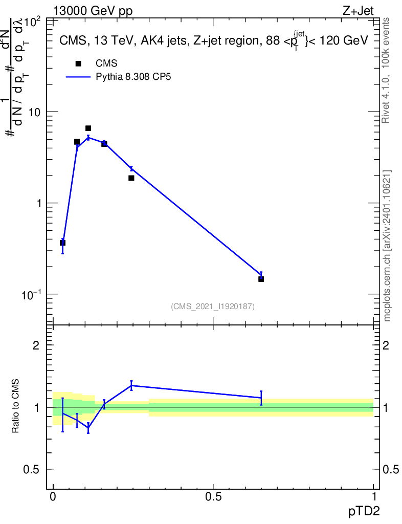 Lines: data, pythia8 8.308 CP5 |