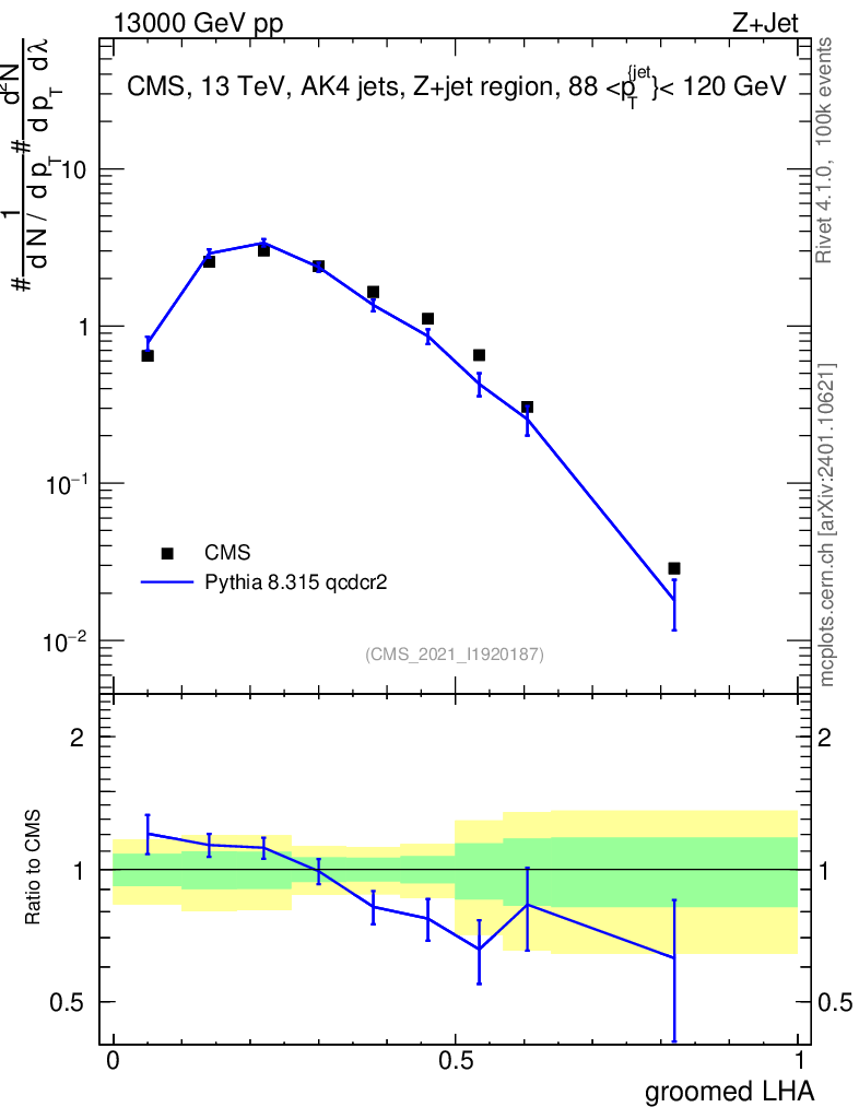 Lines: data, pythia8 8.315 qcdcr2 |