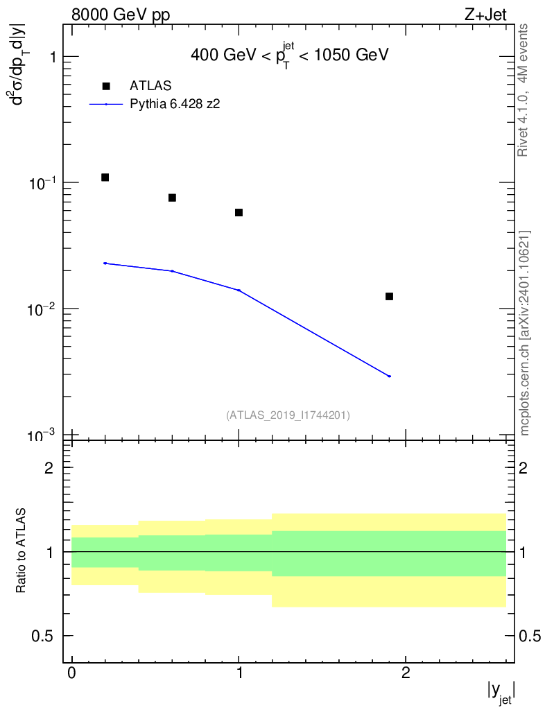 Lines: data, pythia6 6.428 z2 |