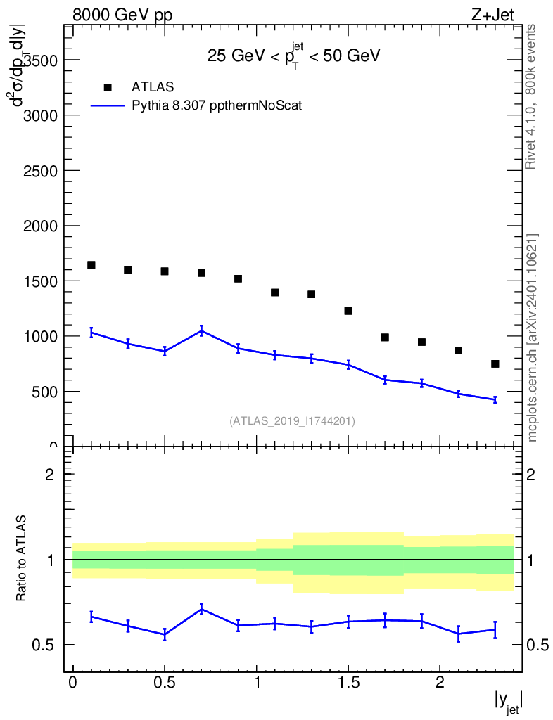 Lines: data, pythia8 8.307 ppthermNoScat |