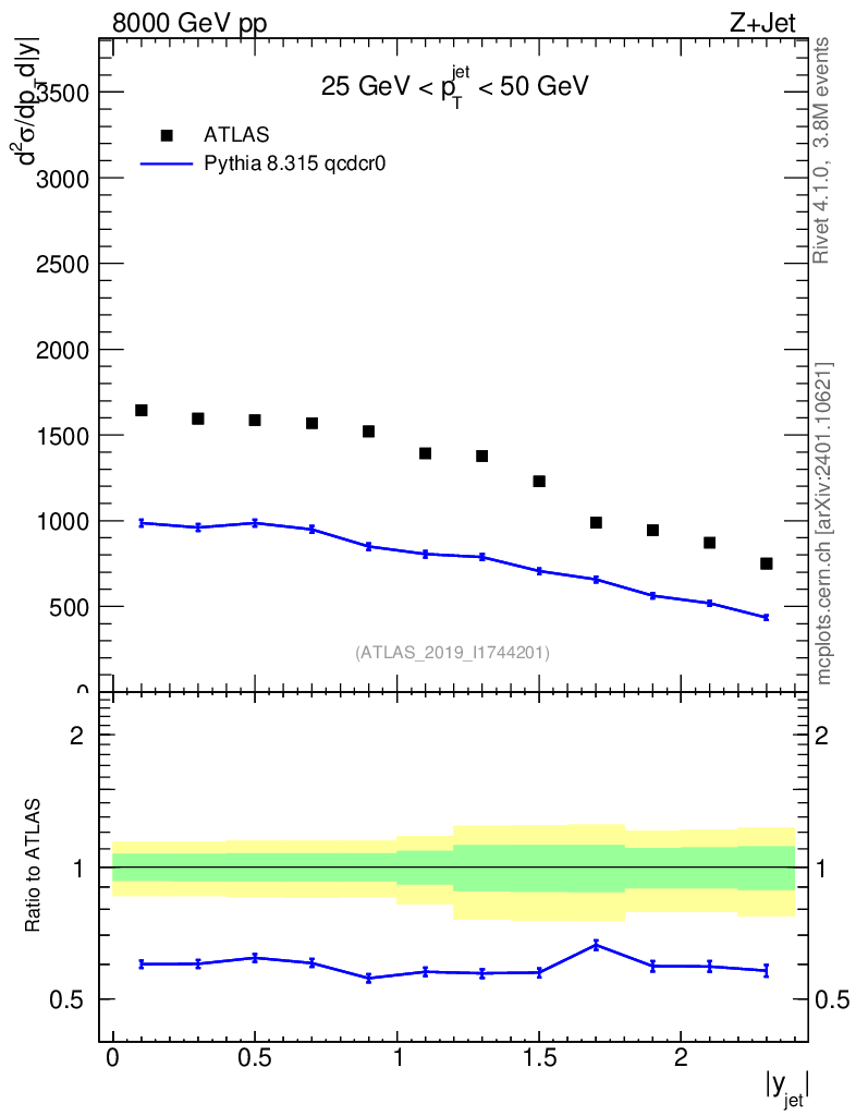 Lines: data, pythia8 8.315 qcdcr0 |