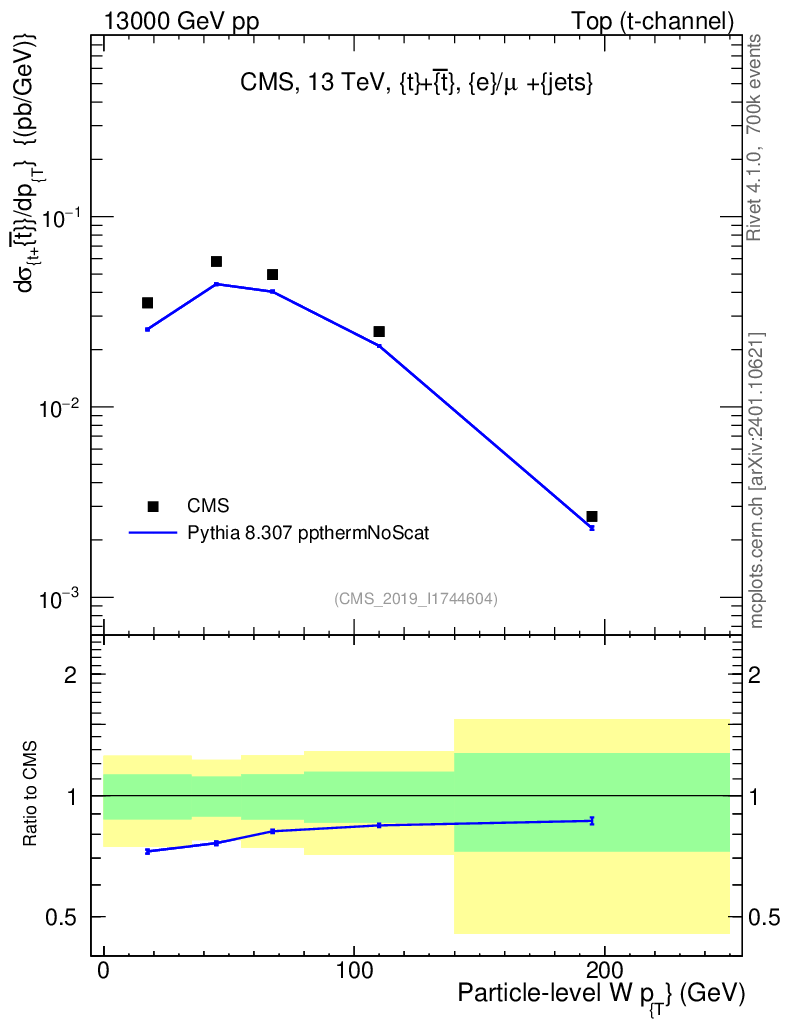 Lines: data, pythia8 8.307 ppthermNoScat |