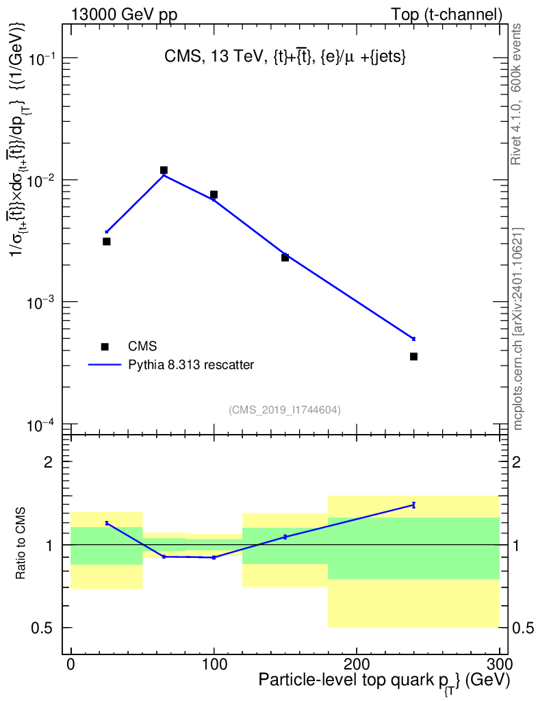 Lines: data, pythia8 8.313 rescatter |