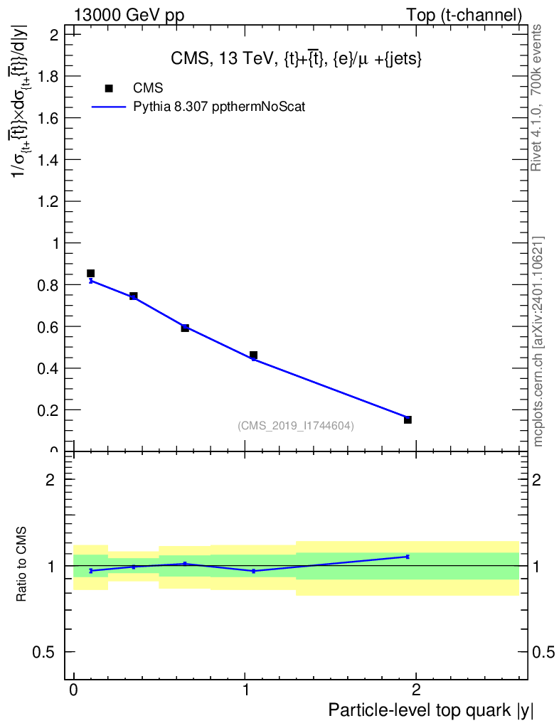 Lines: data, pythia8 8.307 ppthermNoScat |