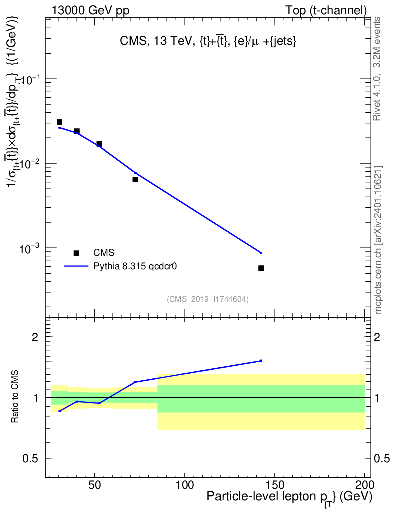 Lines: data, pythia8 8.315 qcdcr0 |