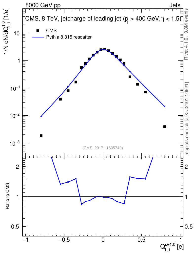 Lines: data, pythia8 8.315 rescatter |