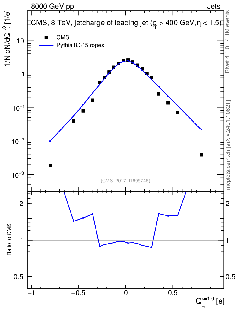 Lines: data, pythia8 8.315 ropes |