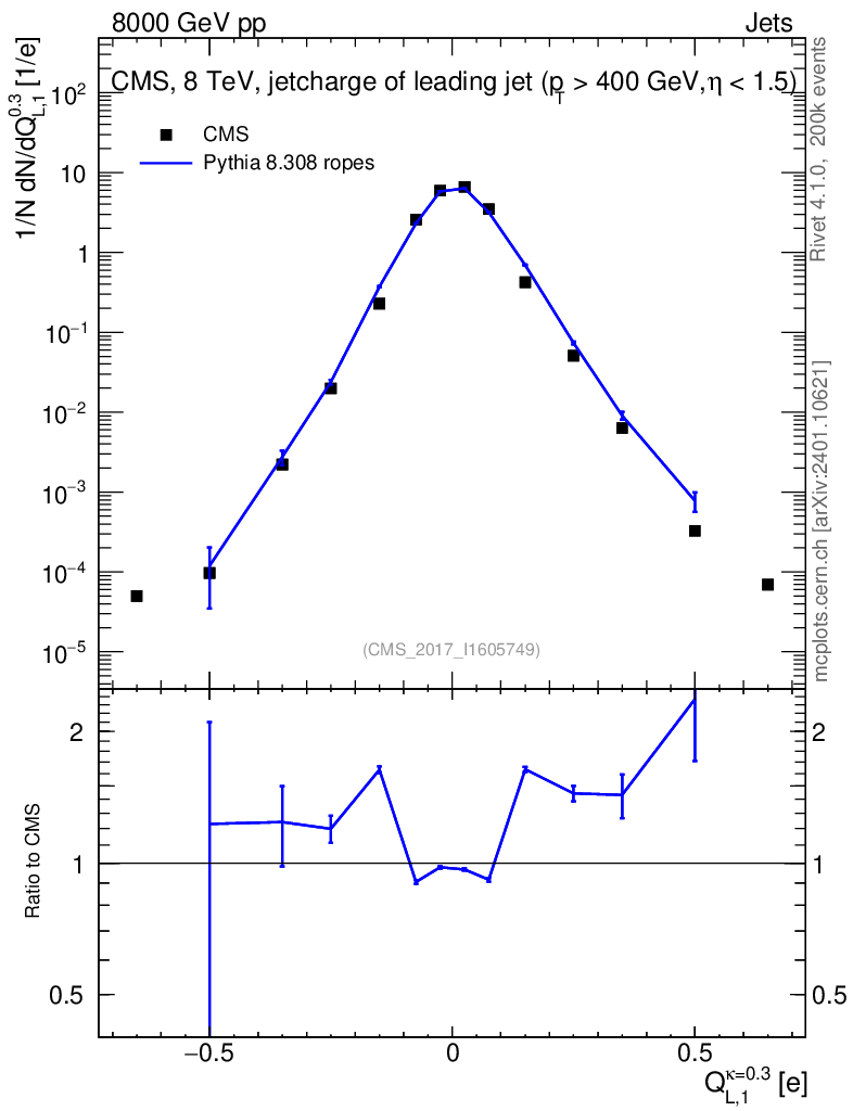 Lines: data, pythia8 8.308 ropes |