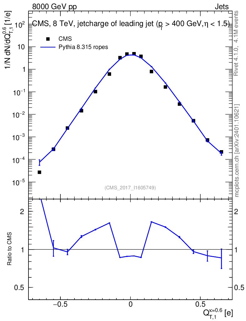 Lines: data, pythia8 8.315 ropes |