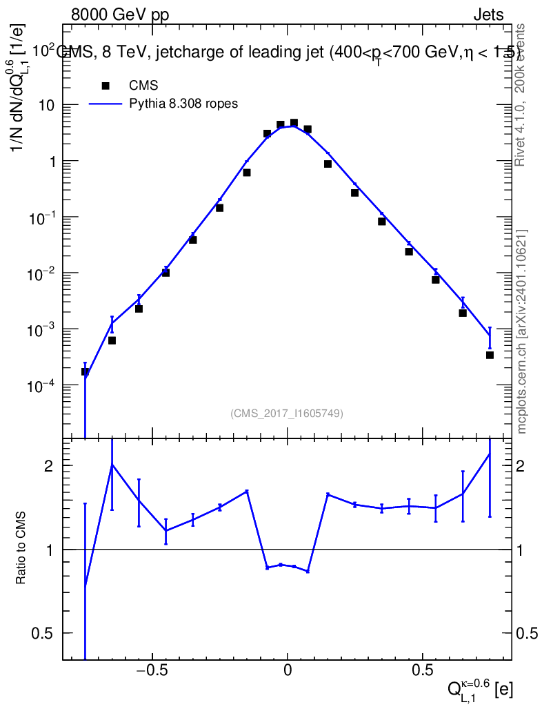 Lines: data, pythia8 8.308 ropes |