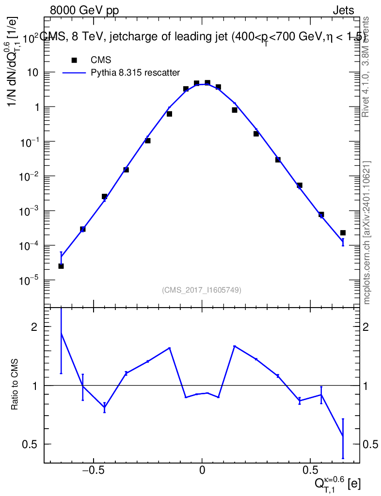 Lines: data, pythia8 8.315 rescatter |
