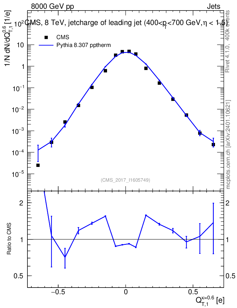 Lines: data, pythia8 8.307 pptherm |