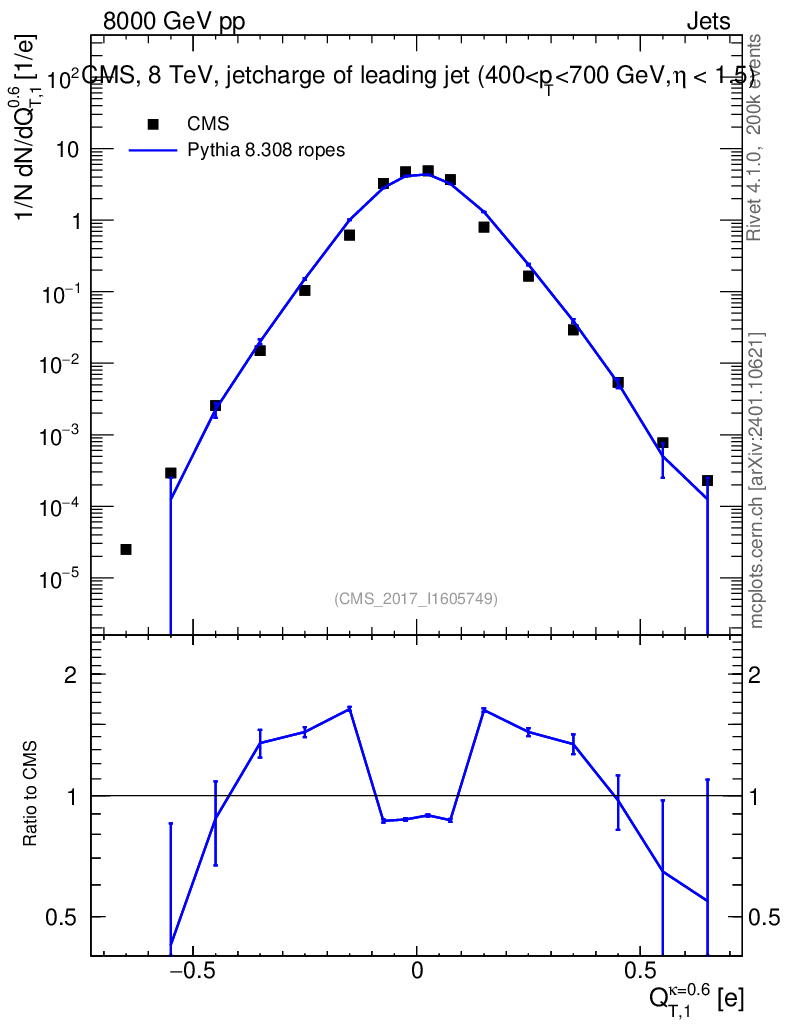 Lines: data, pythia8 8.308 ropes |