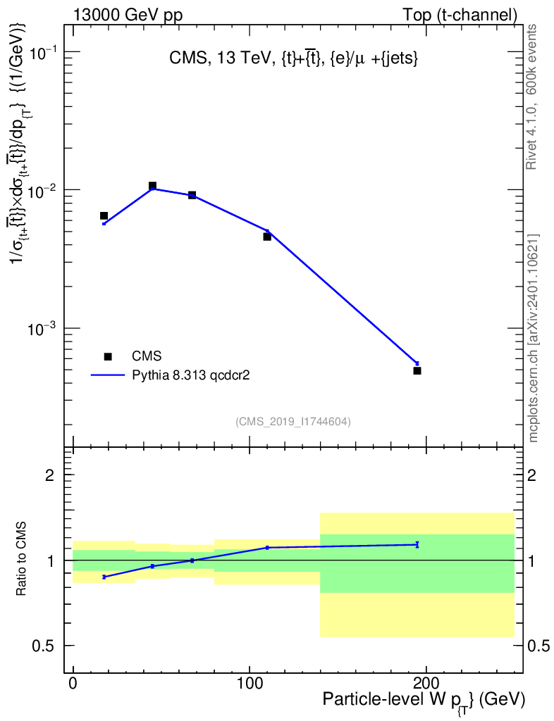 Lines: data, pythia8 8.313 qcdcr2 |