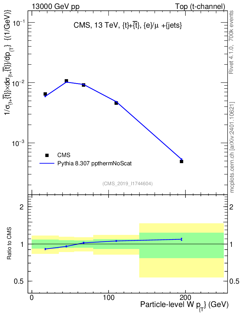 Lines: data, pythia8 8.307 ppthermNoScat |