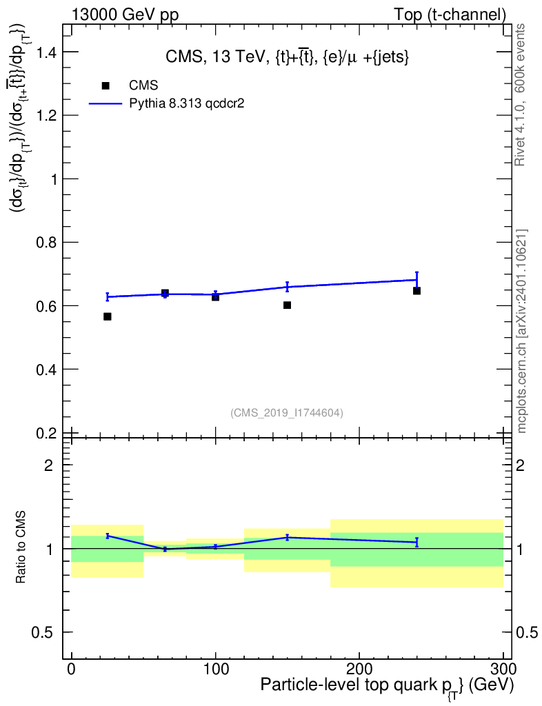Lines: data, pythia8 8.313 qcdcr2 |