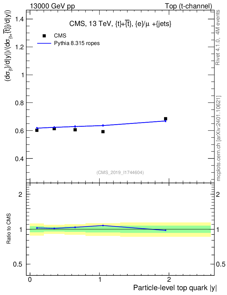 Lines: data, pythia8 8.315 ropes |