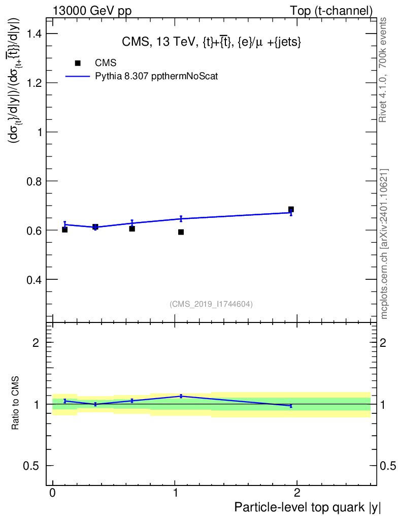 Lines: data, pythia8 8.307 ppthermNoScat |