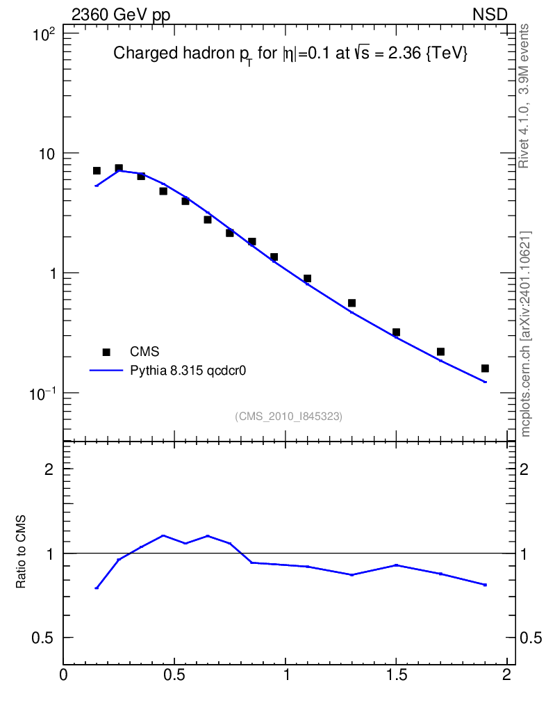 Lines: data, pythia8 8.315 qcdcr0 |