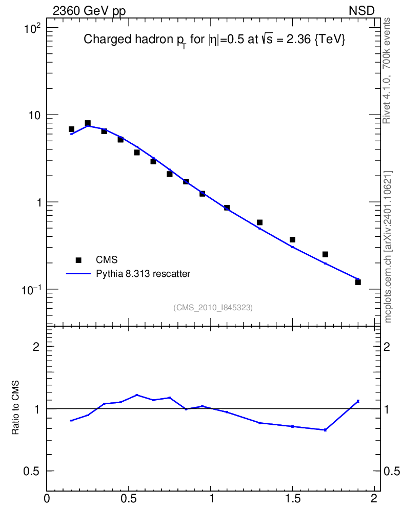Lines: data, pythia8 8.313 rescatter |