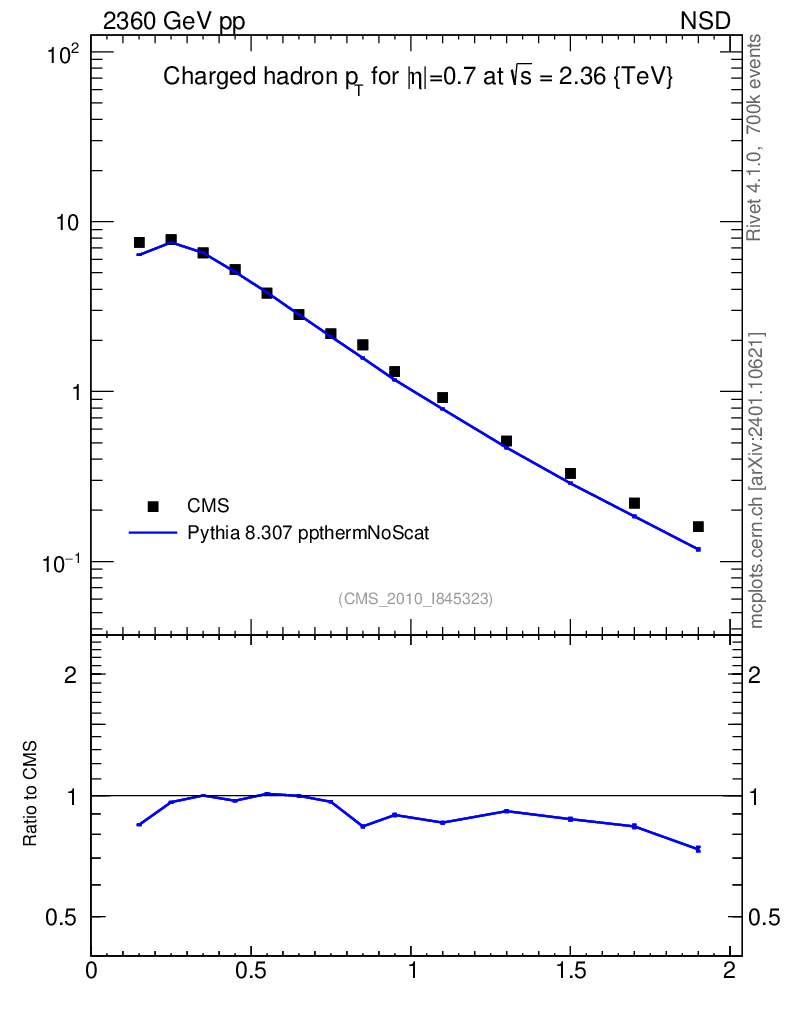 Lines: data, pythia8 8.307 ppthermNoScat |