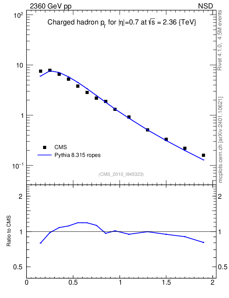 Lines: data, pythia8 8.315 ropes |
