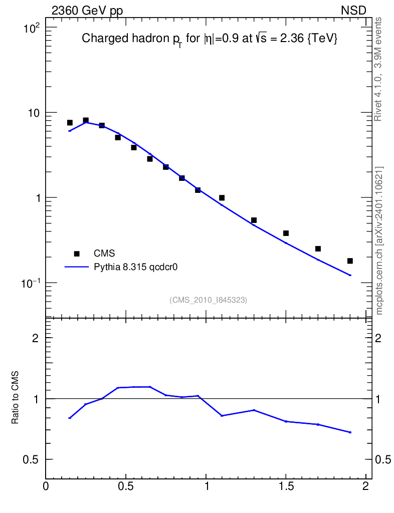 Lines: data, pythia8 8.315 qcdcr0 |