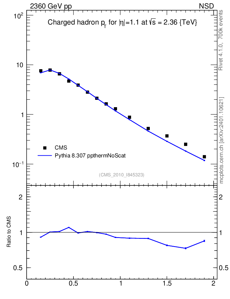 Lines: data, pythia8 8.307 ppthermNoScat |