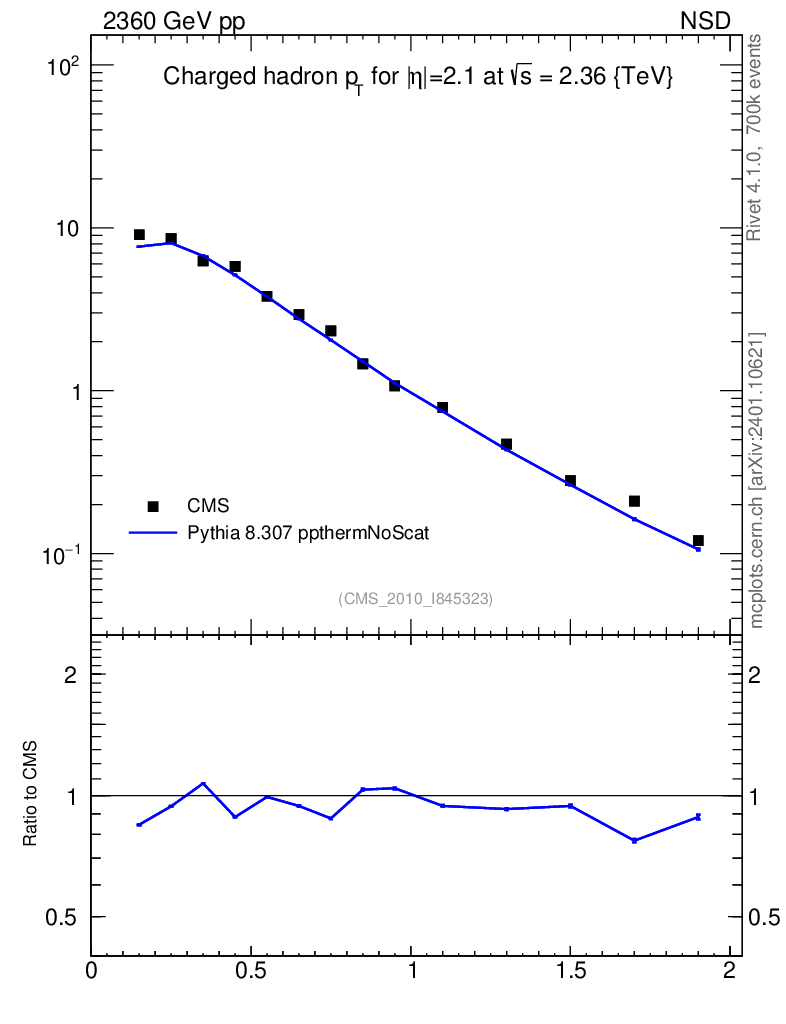 Lines: data, pythia8 8.307 ppthermNoScat |