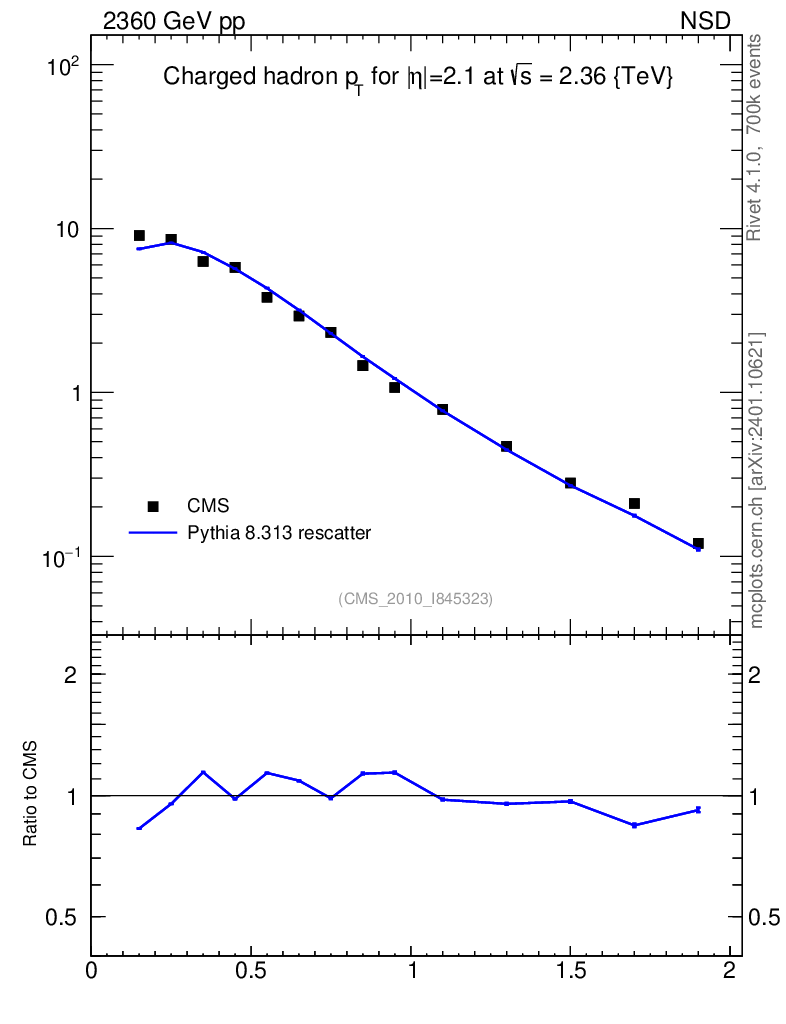 Lines: data, pythia8 8.313 rescatter |
