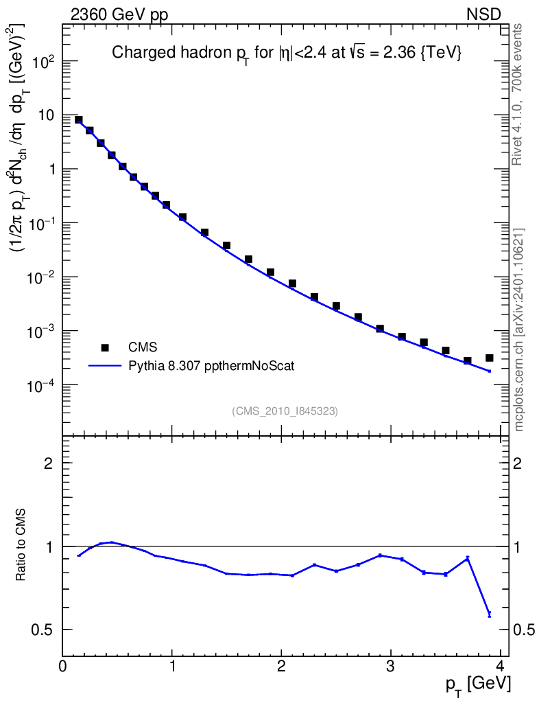 Lines: data, pythia8 8.307 ppthermNoScat |