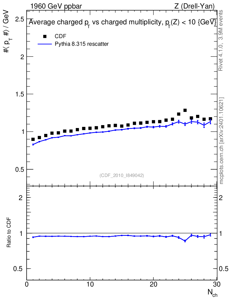 Lines: data, pythia8 8.315 rescatter |