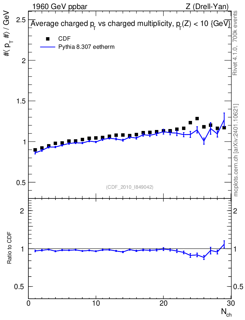 Lines: data, pythia8 8.307 eetherm |