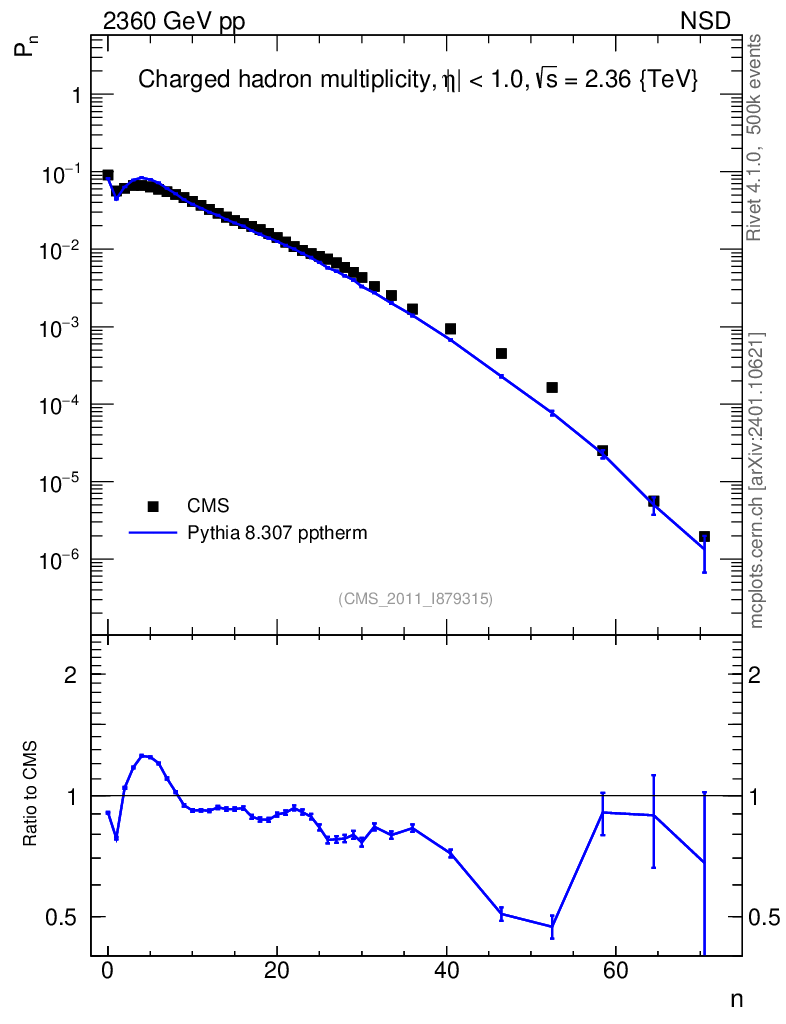 Lines: data, pythia8 8.307 pptherm |