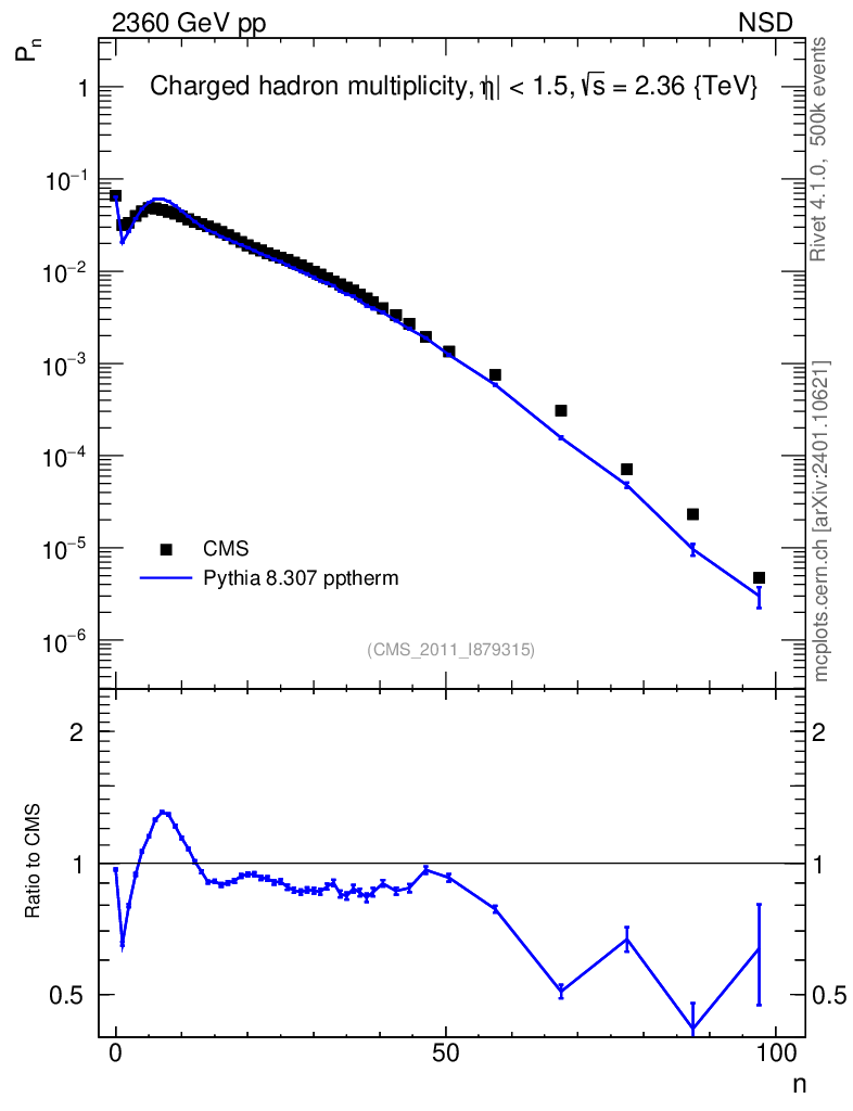 Lines: data, pythia8 8.307 pptherm |