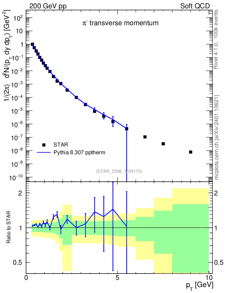 Lines: data, pythia8 8.307 pptherm |
