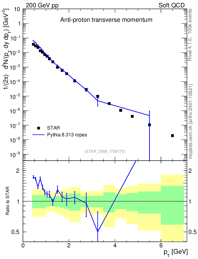 Lines: data, pythia8 8.313 ropes |