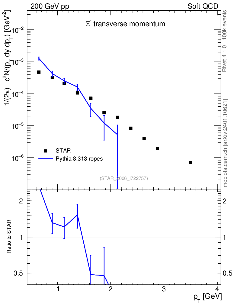 Lines: data, pythia8 8.313 ropes |