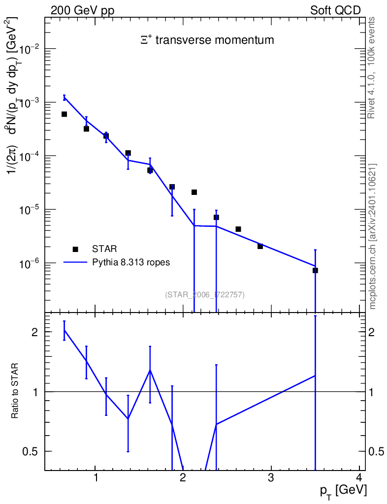 Lines: data, pythia8 8.313 ropes |
