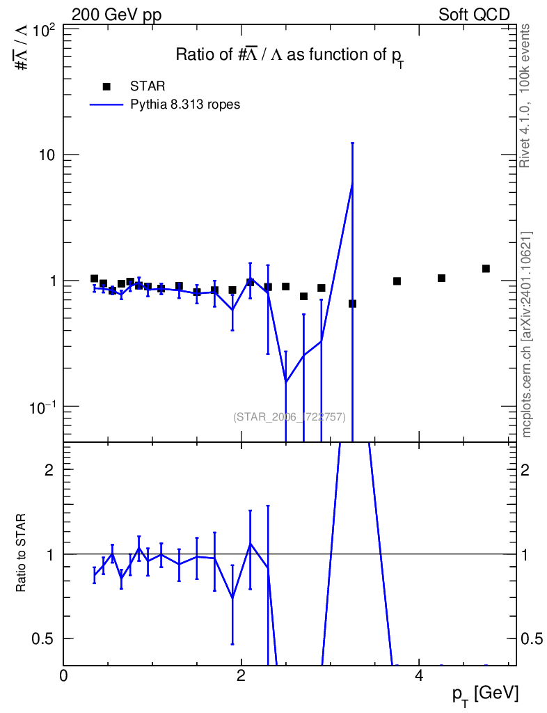 Lines: data, pythia8 8.313 ropes |