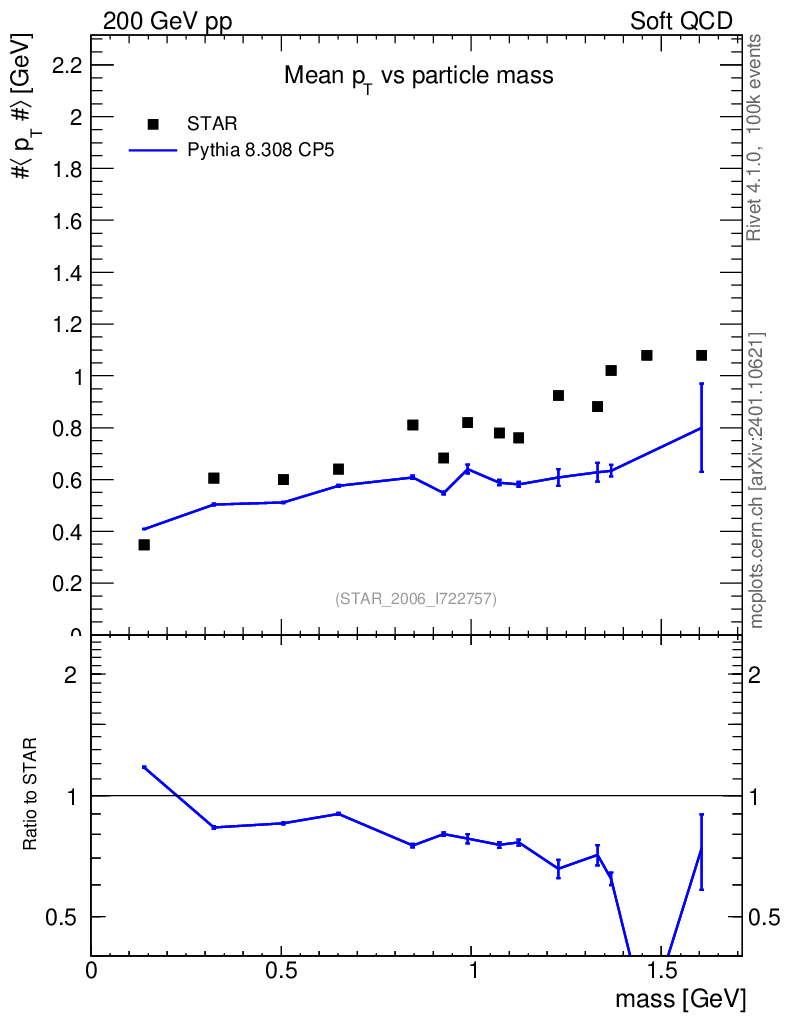 Plot of pt-vs-mass in 200 GeV pp collisions