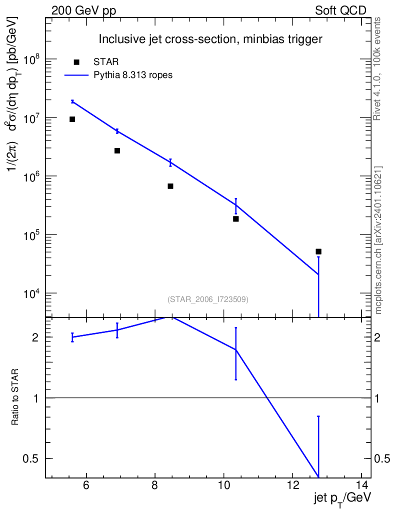 Lines: data, pythia8 8.313 ropes |