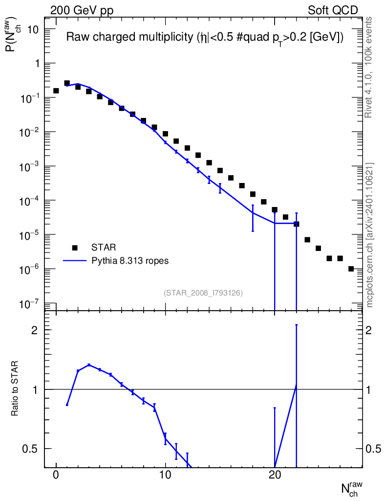 Lines: data, pythia8 8.313 ropes |