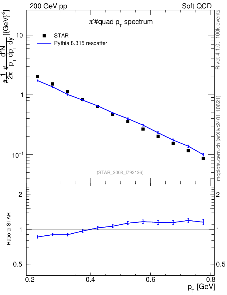 Lines: data, pythia8 8.315 rescatter |