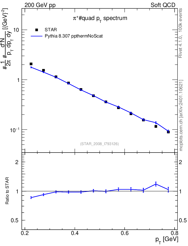 Lines: data, pythia8 8.307 ppthermNoScat |