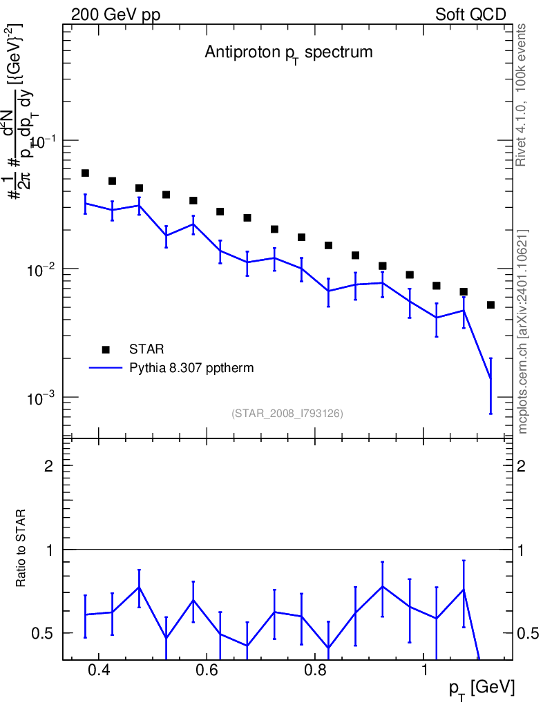 Lines: data, pythia8 8.307 pptherm |