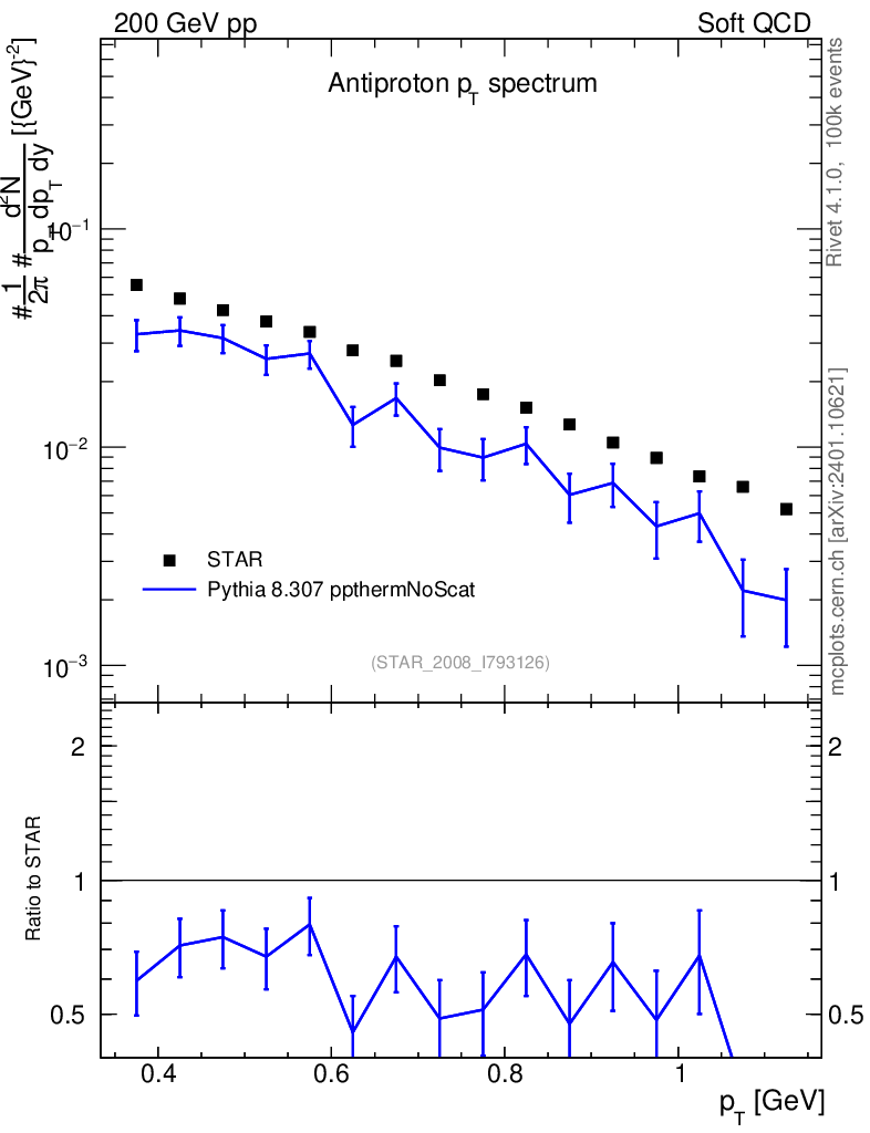 Lines: data, pythia8 8.307 ppthermNoScat |