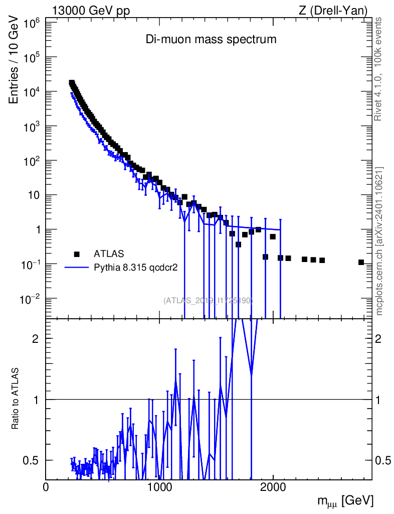 Lines: data, pythia8 8.315 qcdcr2 |