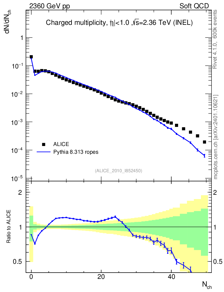 Lines: data, pythia8 8.313 ropes |