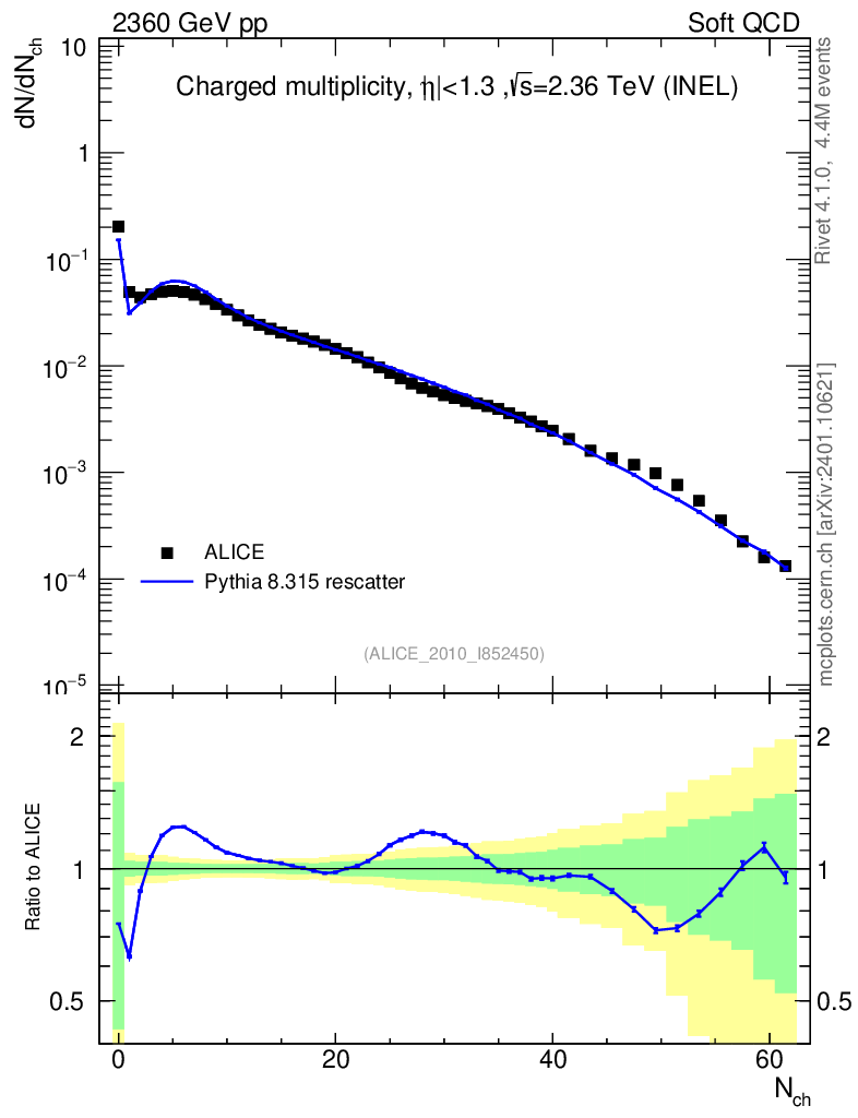 Lines: data, pythia8 8.315 rescatter |